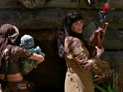 And here are a few screencaps from the episode "Kindred Spirits", you can see the same quiver style holded by Xena.